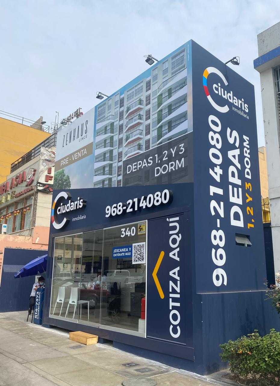 La caseta de ventas del proyecto Zenhaus destaca por su formato en contenedor, una solución compacta y práctica diseñada para recibir de manera eficiente a los interesados en el proyecto.